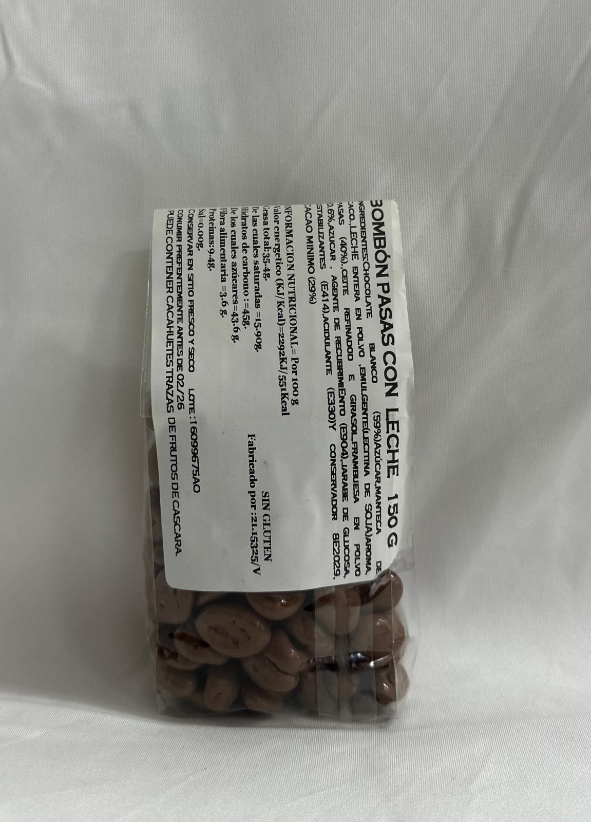 Pasas con chocolate con leche 150 g.
